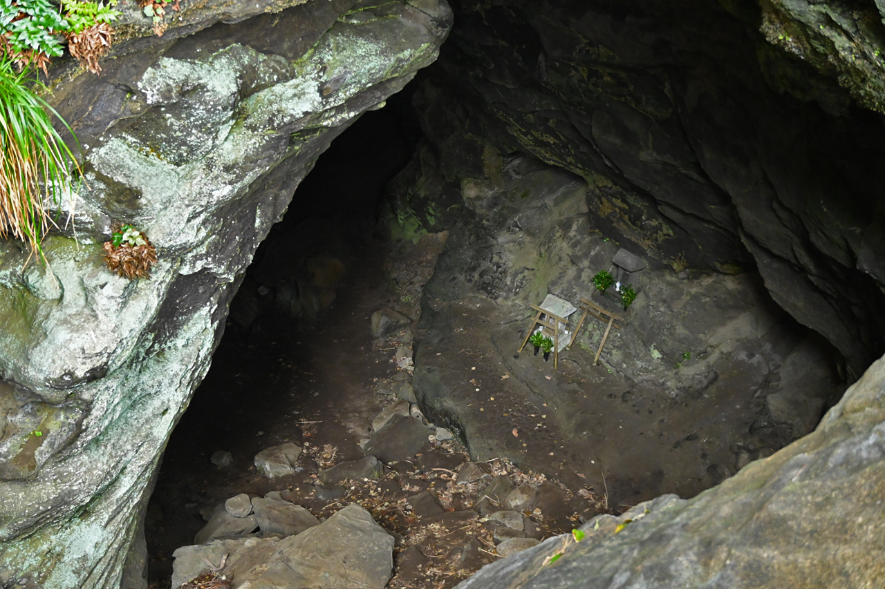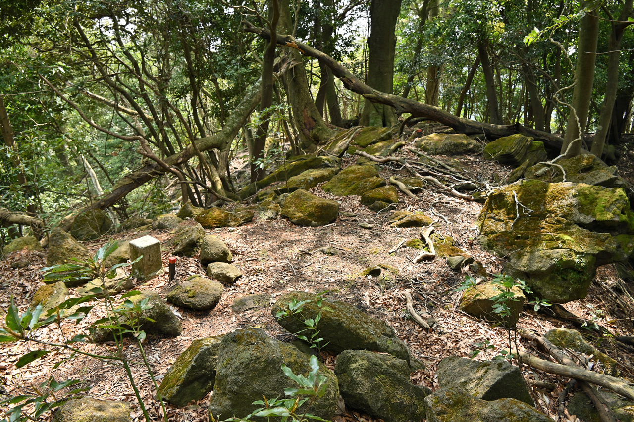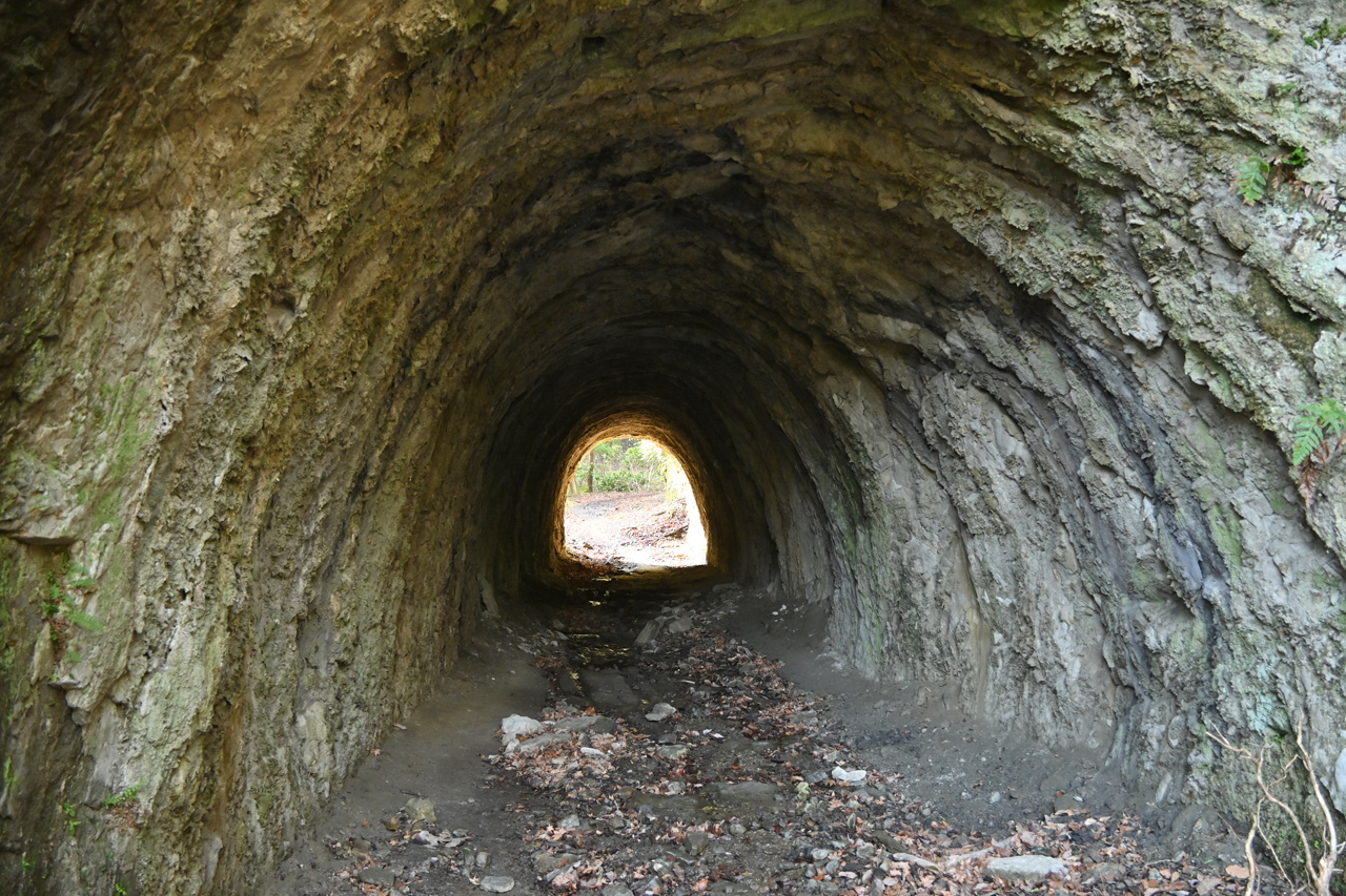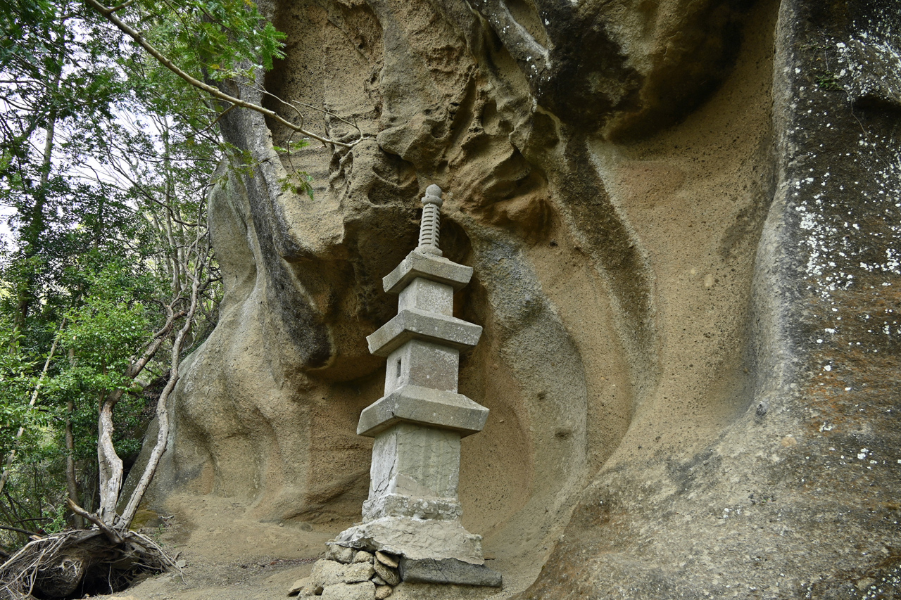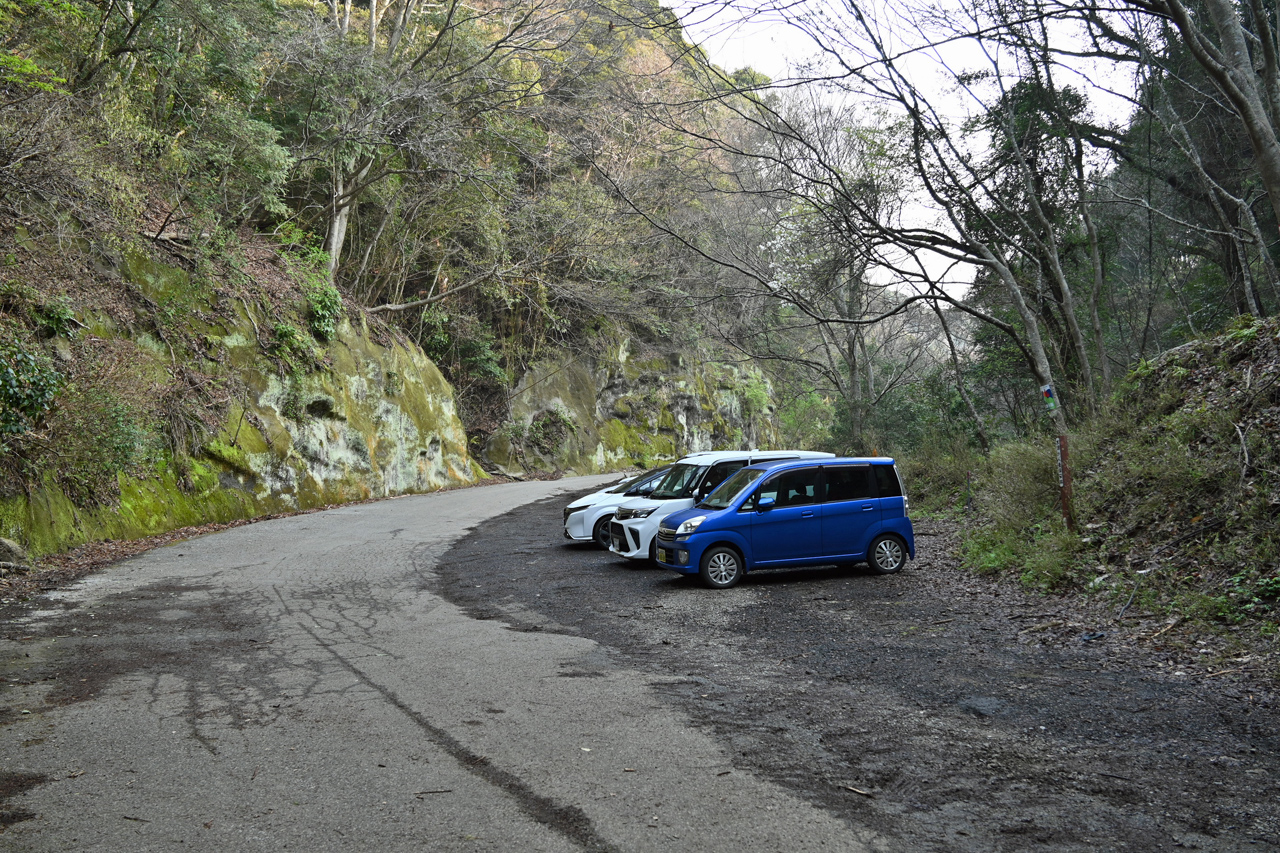 山中に忽然と切通し出現 このあたりもかつては石切りをしていたのだろうか