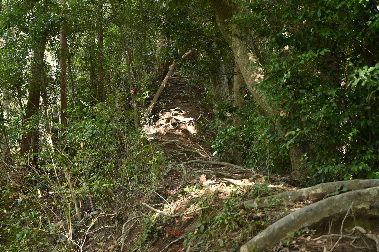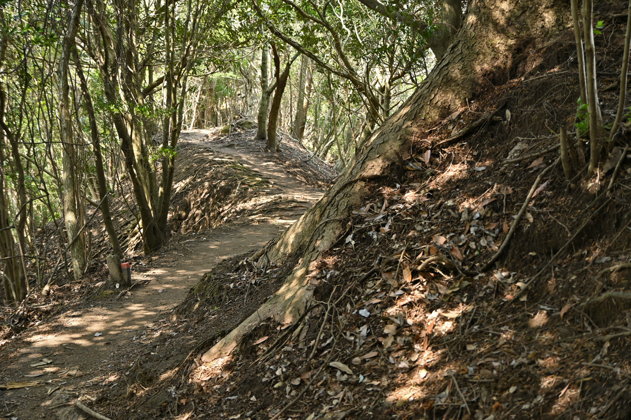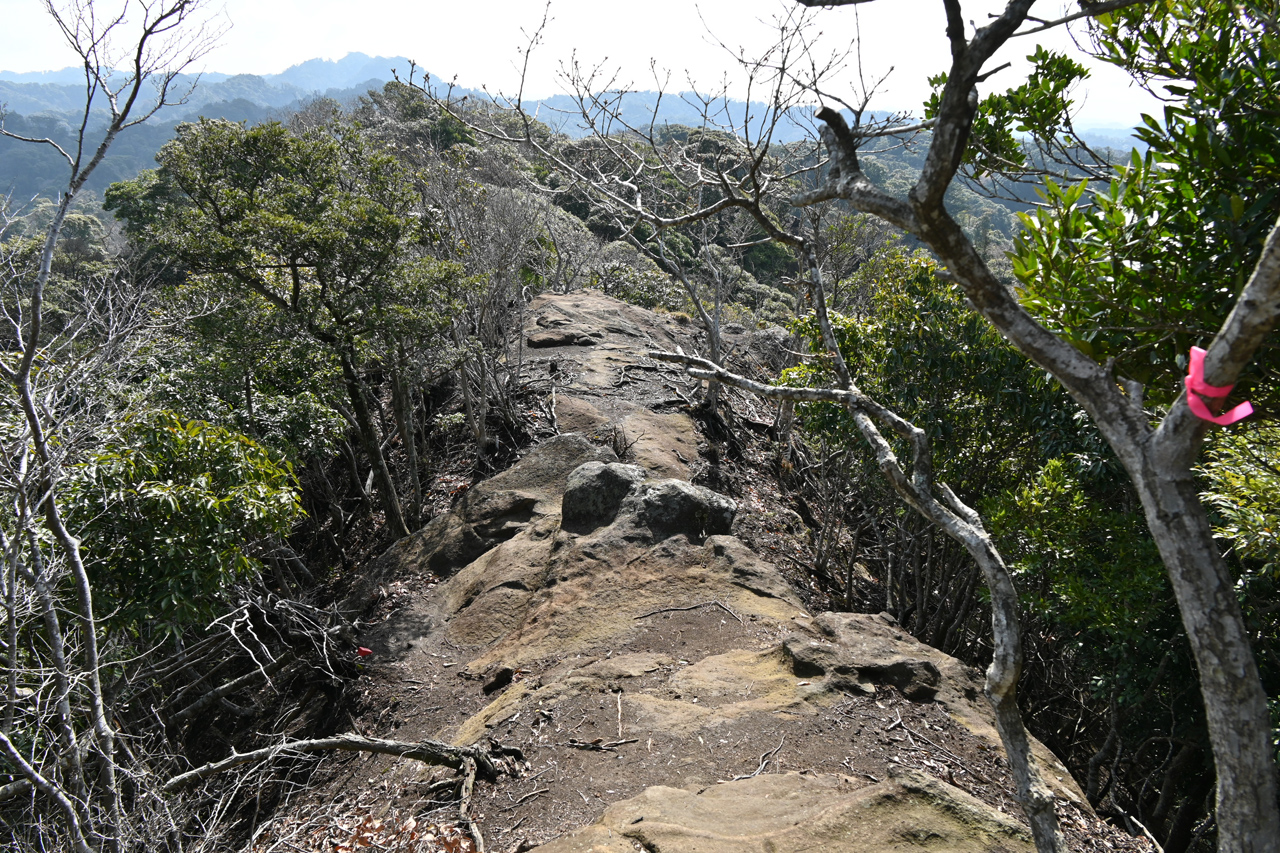 そして林道から小鋸山に至る箇所では、鋸山周辺の山域に特徴的な凝灰質砂岩の痩せ尾根が出てきます。