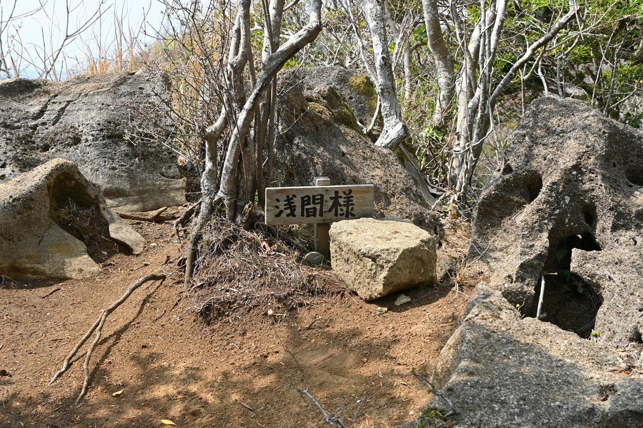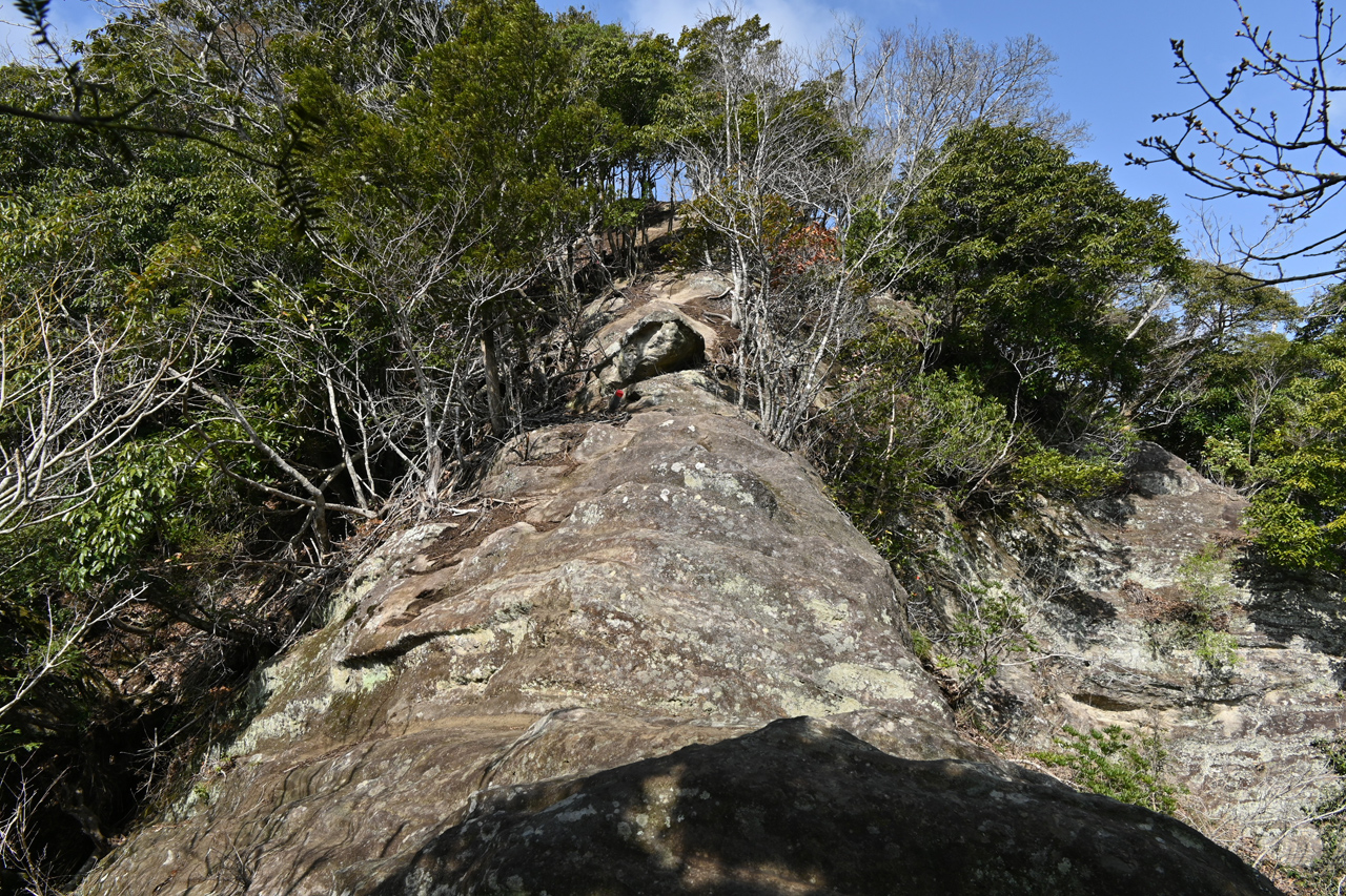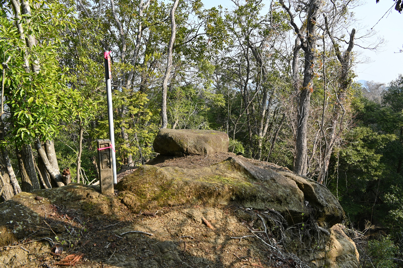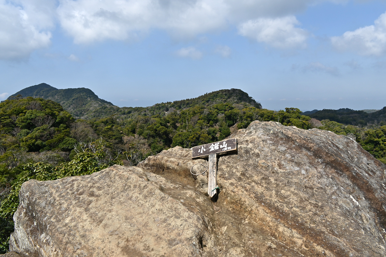 露岩を登り切ればそこが小鋸山 山名板は手持ちタイプでいろいろやってみたが決まらず結局置いて撮った