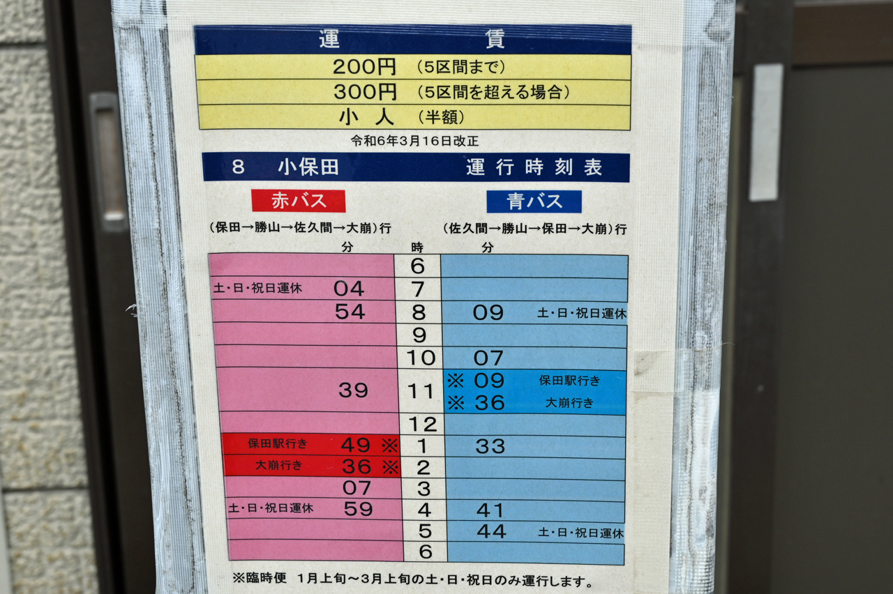 乗るべき次の赤バス時間まであと2時間以上もあるから保田駅まで歩き確定