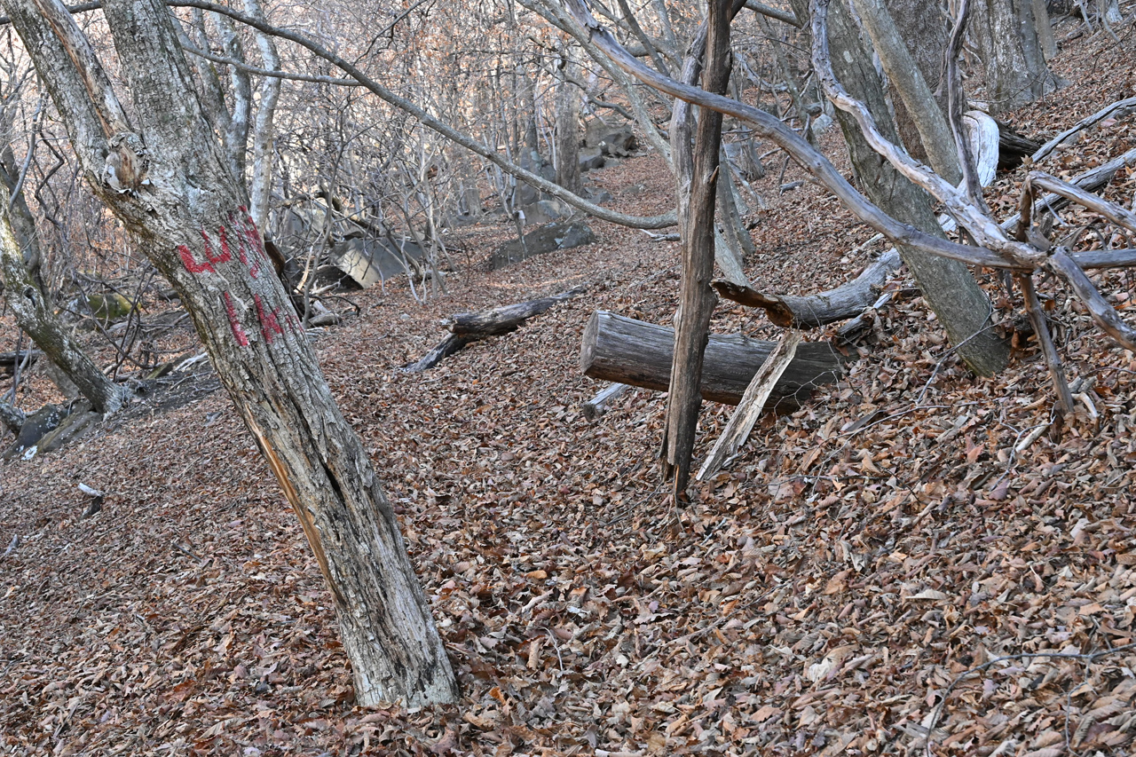 空身で歩く人三人に逢った大蔵経寺山を通過し、その先の稜線に踏み込むと一人旅。