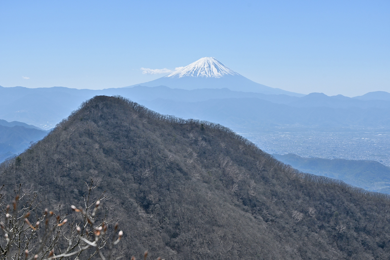 舗装道の行き止まりに展望台があり、今日随一の眺望だ 富士山との間にある御坂山地周辺もあらかたのピークは踏んでいるが、更に足跡を濃くしたいところ