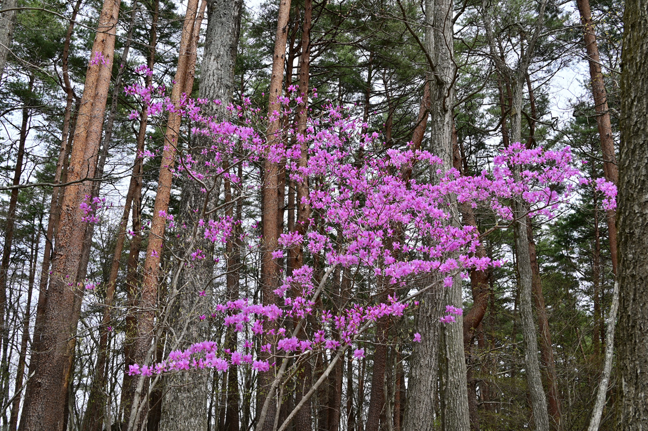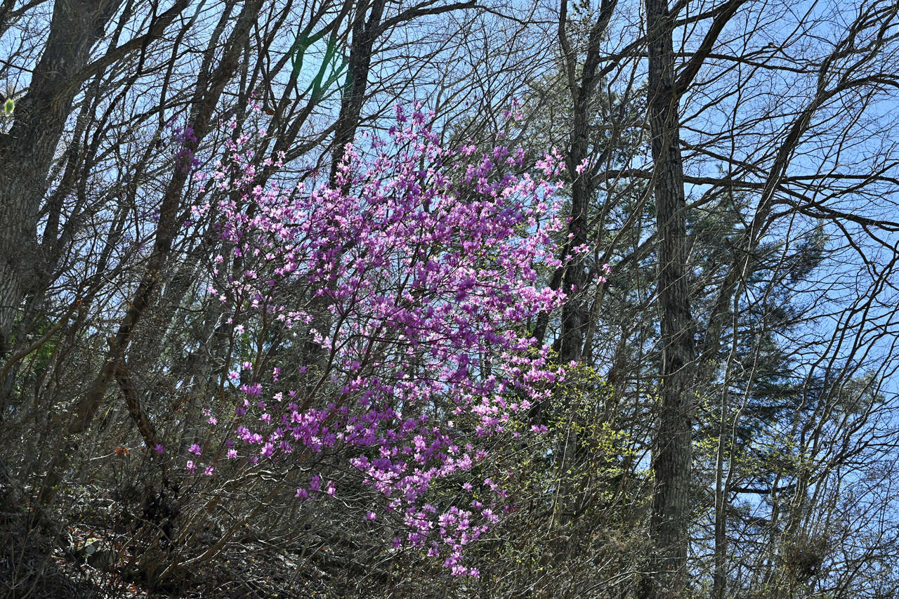 眺望は期待できないルートなので、コース半ばの奇麗なツツジの元で昼食休憩としました。