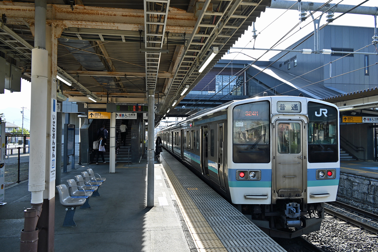 甲府から二駅の石和温泉まではあっという間の電車旅でした。