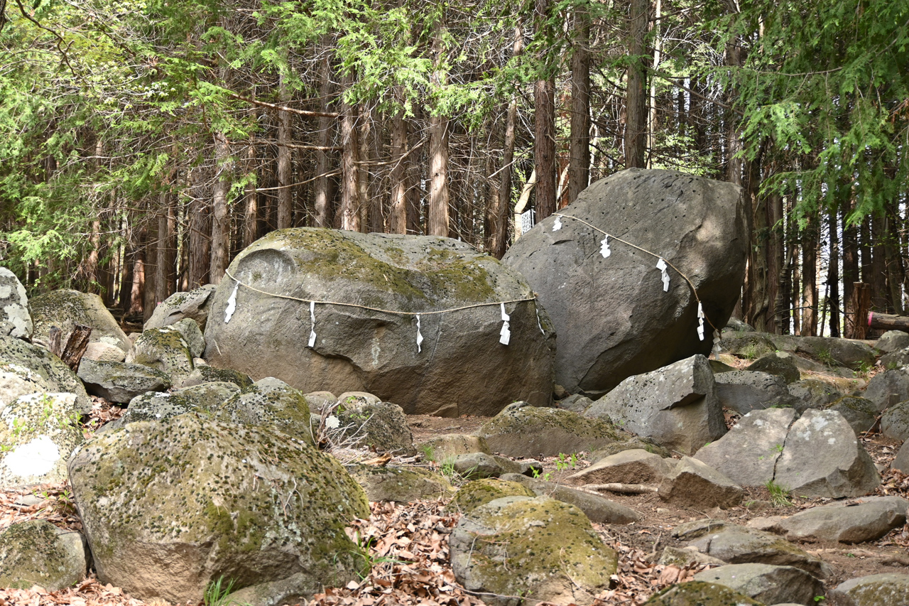 「大蔵経寺 磐座(いわくら)」 神が初めに降りたとされるご神体だとか 寺に神?調べるとやはり神仏習合ということだ