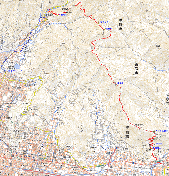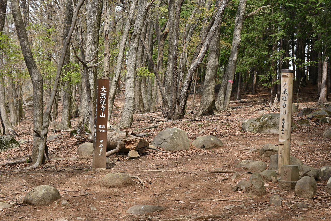 山梨遠征の二座目は、石和温泉の北に位置する大蔵経寺山より里山稜線(とはいえ標高が1000m近い)を辿り要害山までのルートを歩きました。