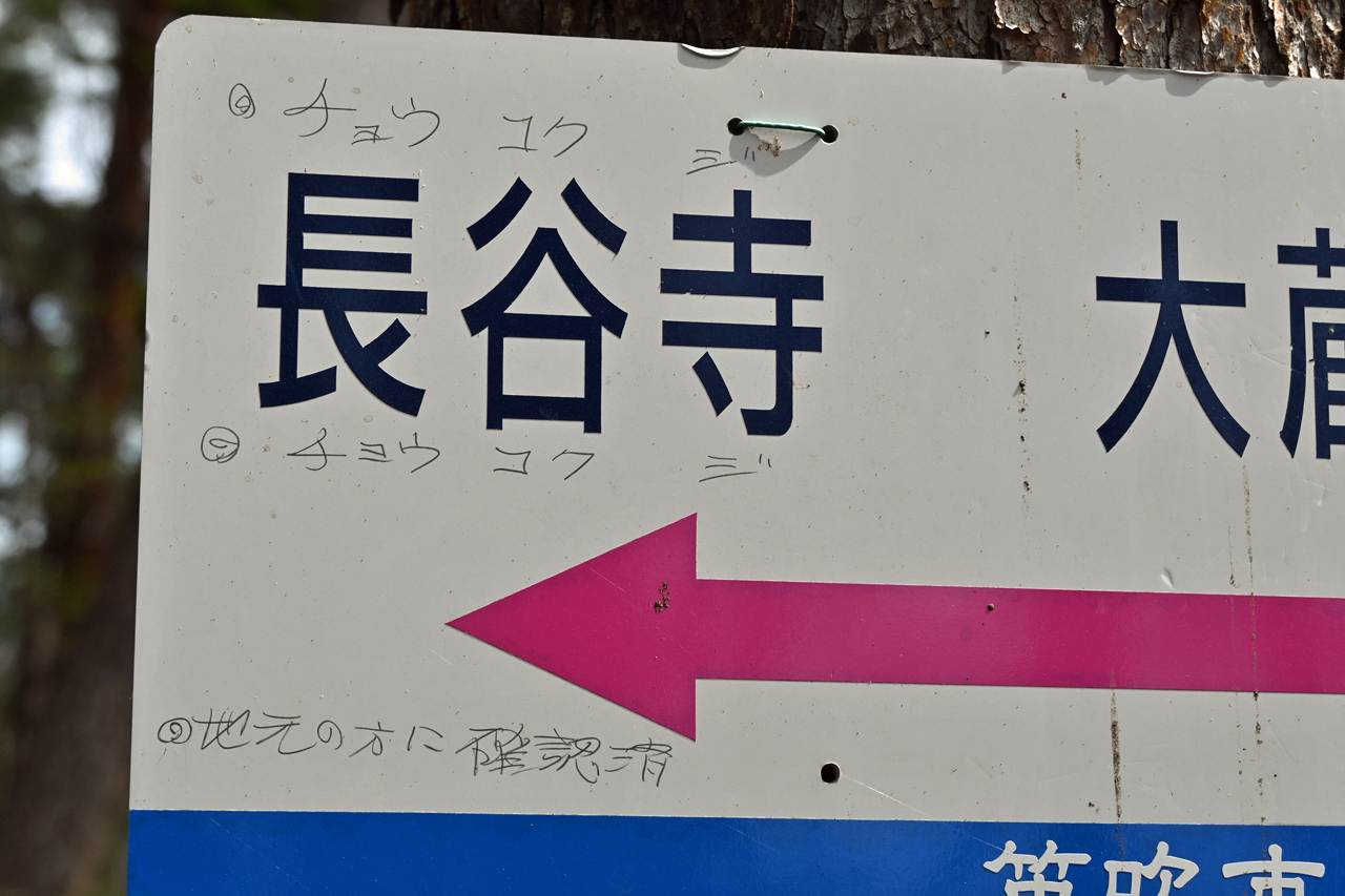 もう一枚、同じ道標があったがやはり書き込みあり 親切心からだろうが、ちょっと大人げないと思う