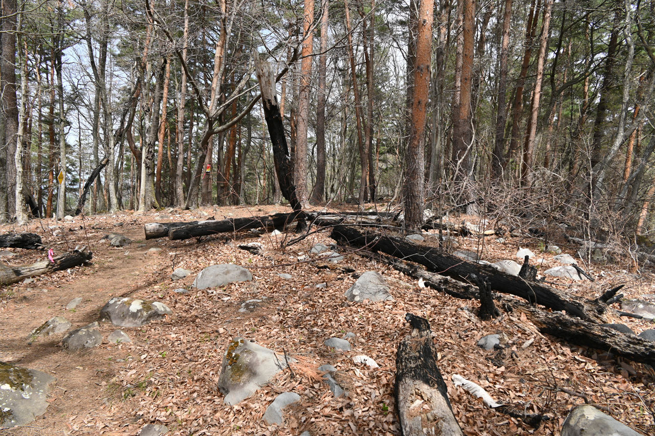 ようやく最後のピーク、というか山城の平坦地である要害山へ到着 ここも眺望はまったく無い