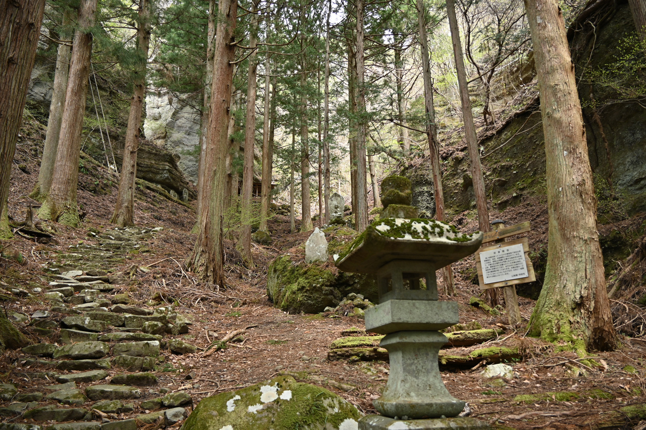 石和温泉駅からすぐに大蔵経寺の伽藍と墓地が見え、その脇を上がっていく登山道へと進みます。