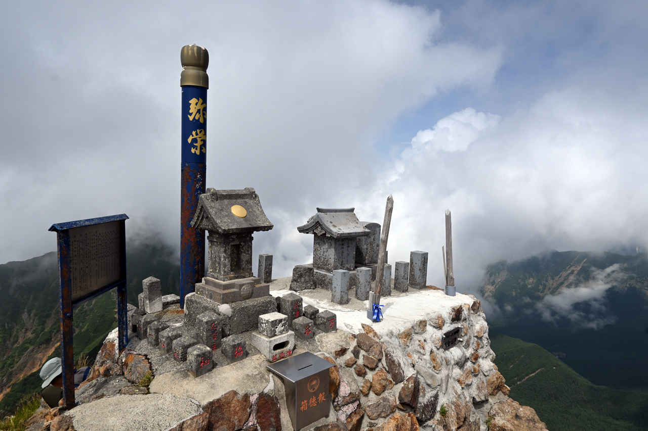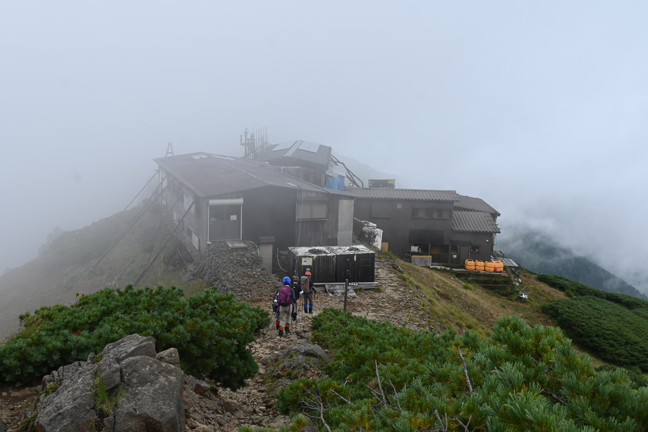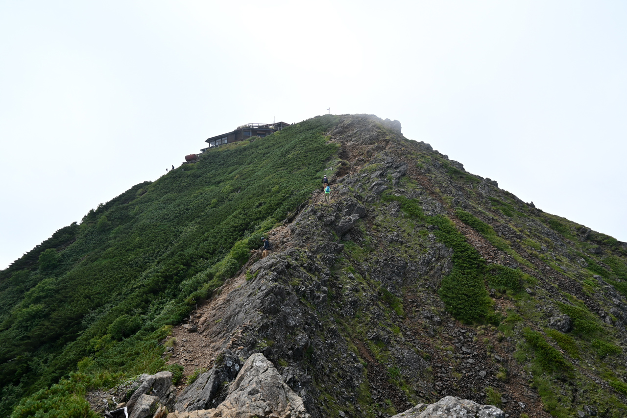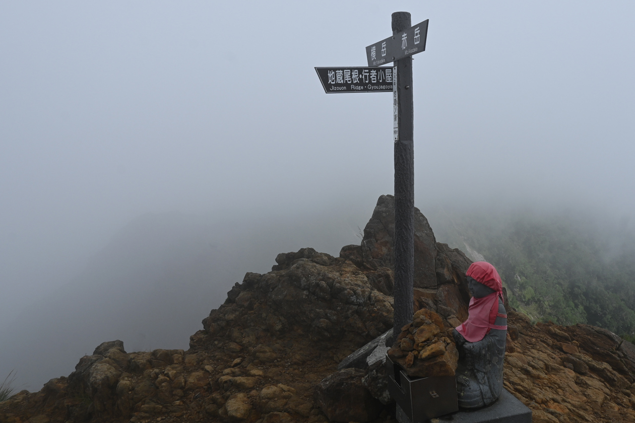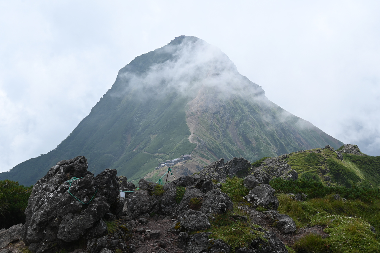 廻りこむようにして井戸岳を降りる頃には、周辺だけ急にガスが取れて大岳山頂の眺望に期待が。