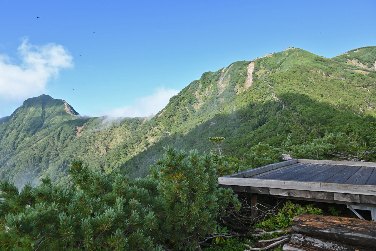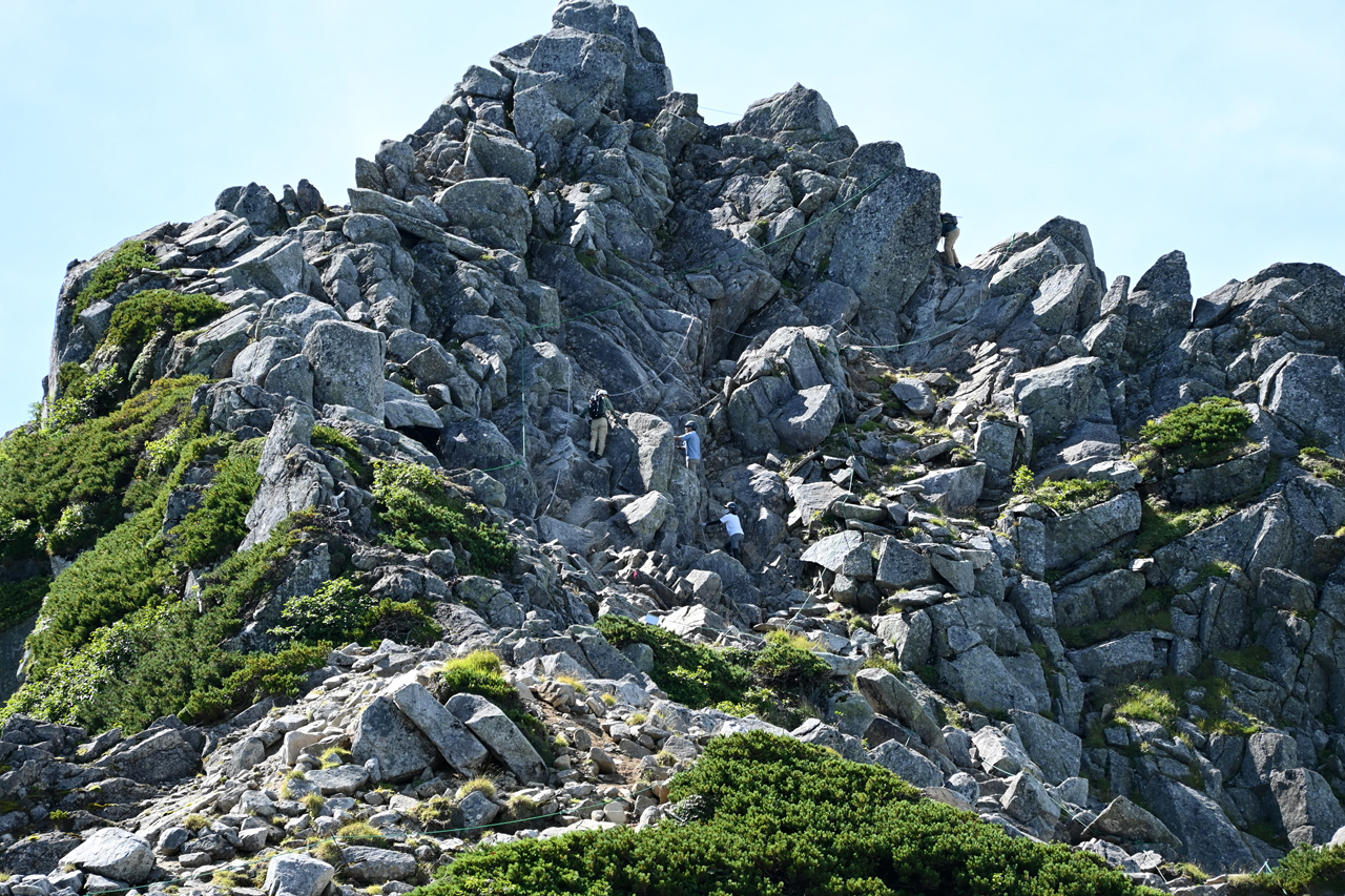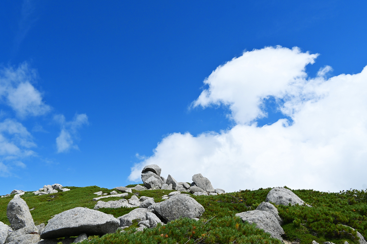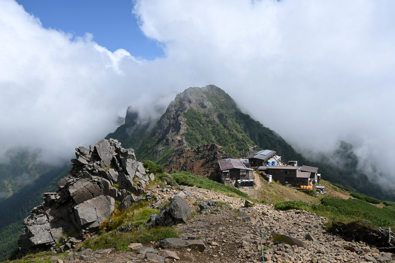 廻りこむようにして井戸岳を降りる頃には、周辺だけ急にガスが取れて大岳山頂の眺望に期待が。