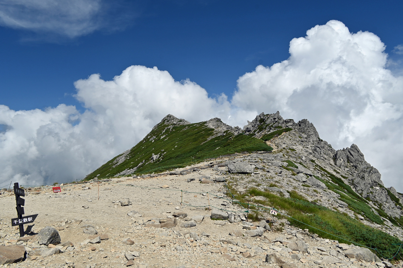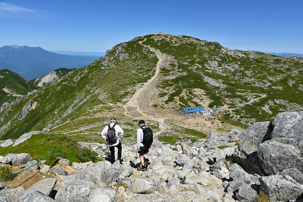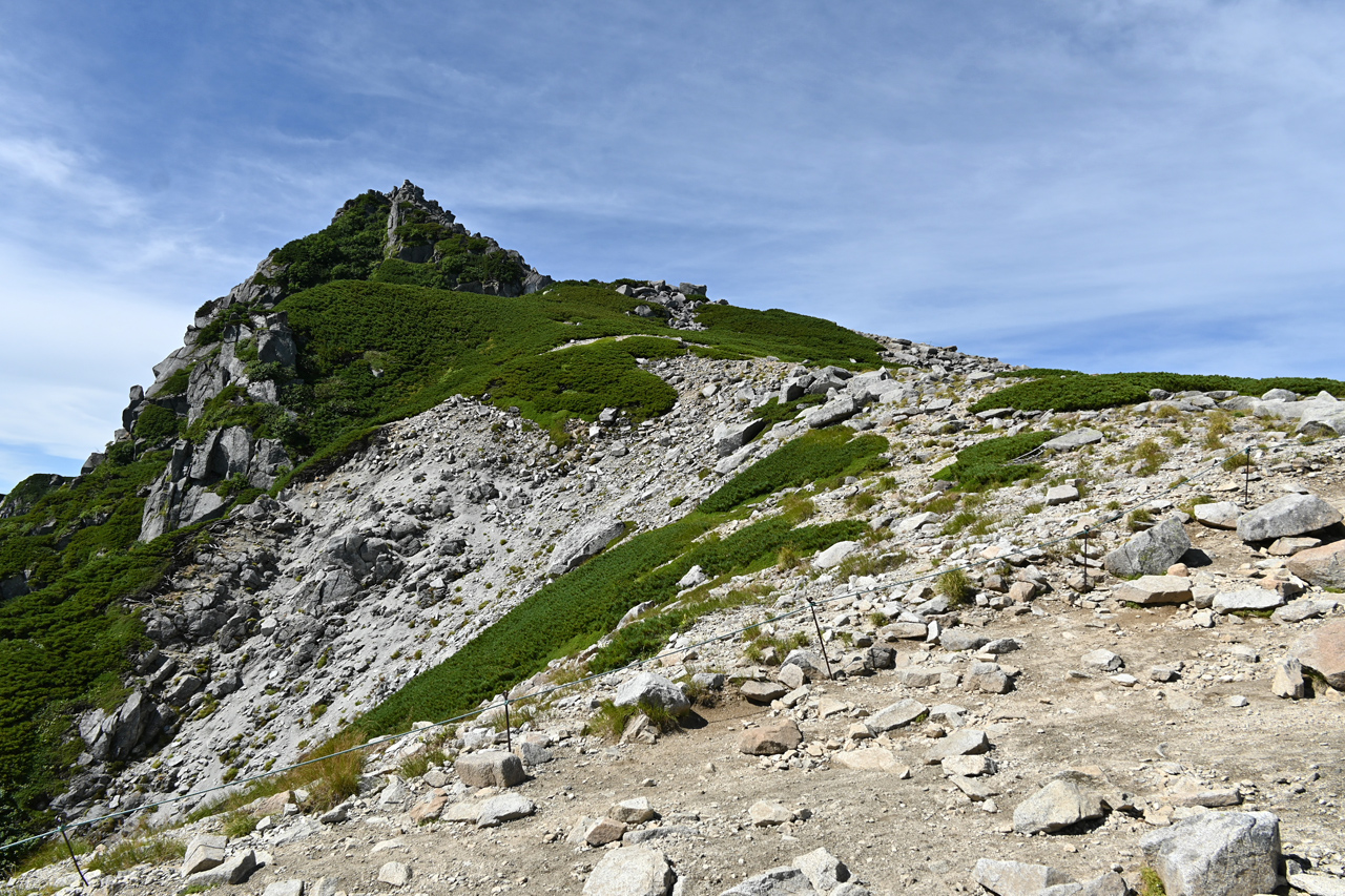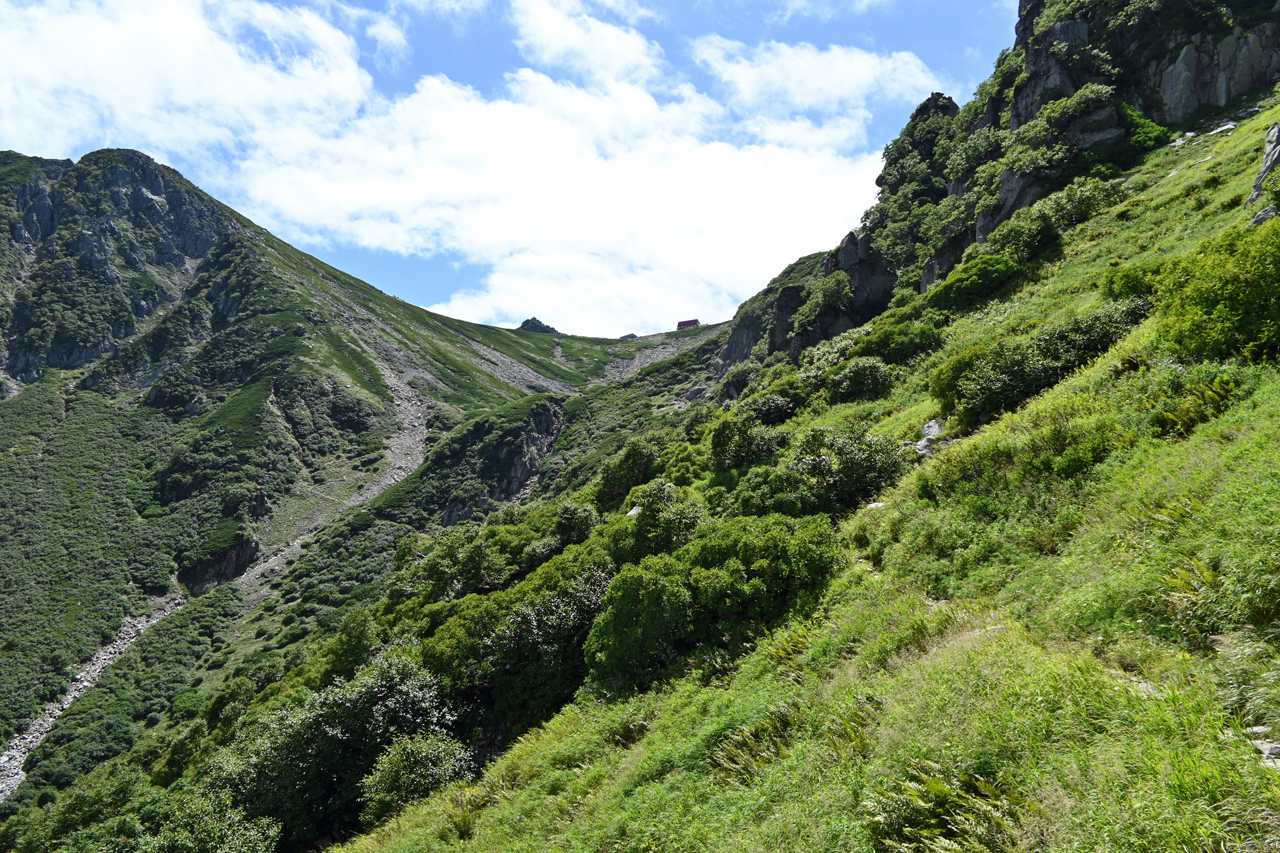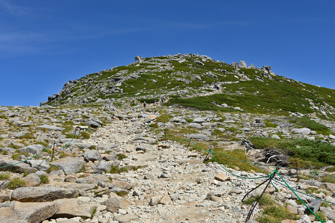 廻りこむようにして井戸岳を降りる頃には、周辺だけ急にガスが取れて大岳山頂の眺望に期待が。