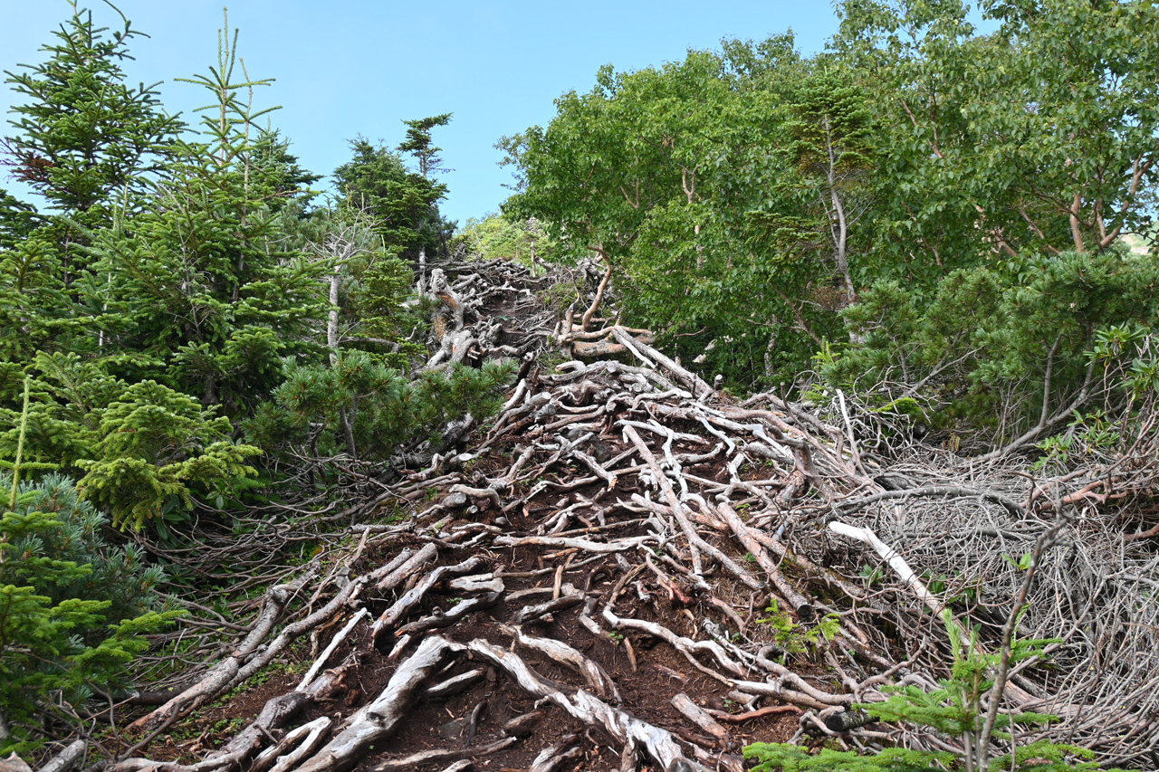 通過点のような田茂萢岳を越え、「宮様コース分岐」という鞍部から赤倉岳方面への登りにかかります。