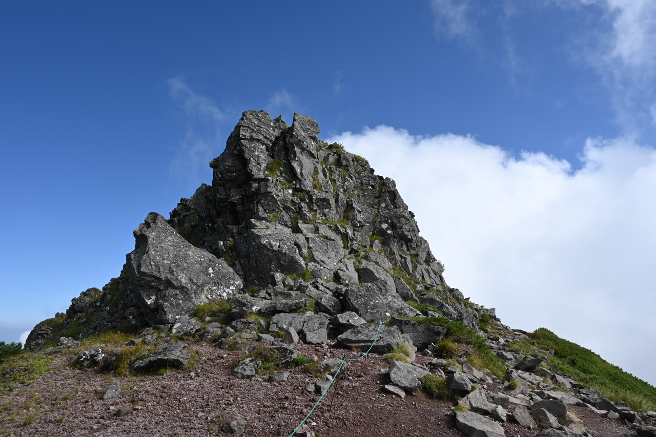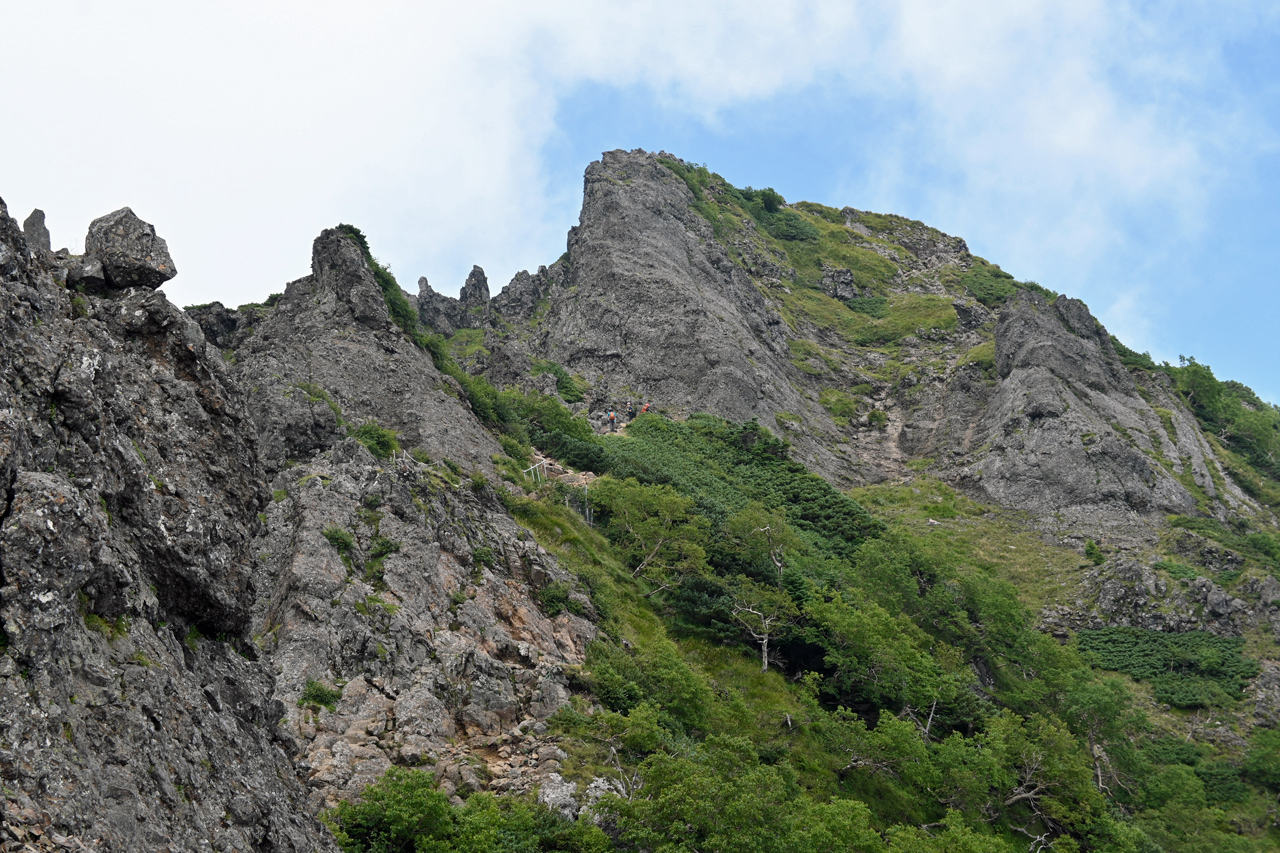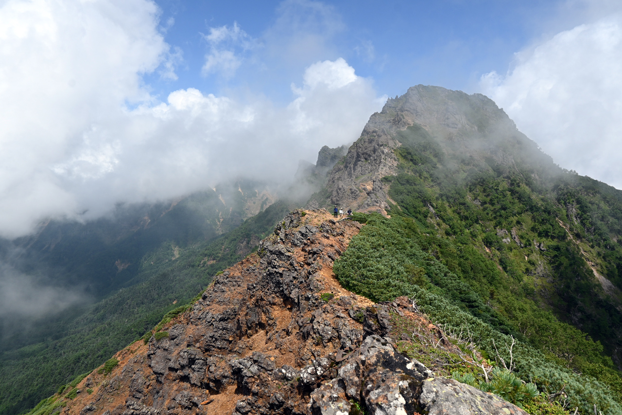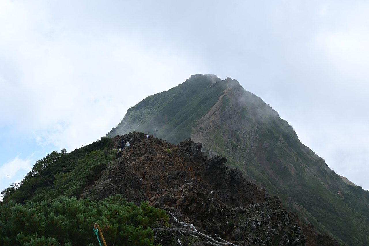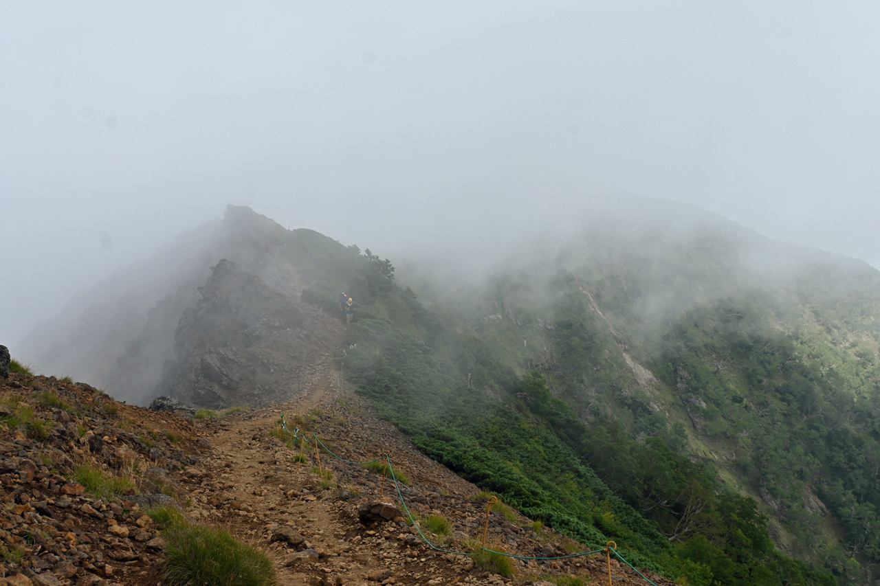 赤倉岳が近づくと噴火口跡の稜線を辿ります。
