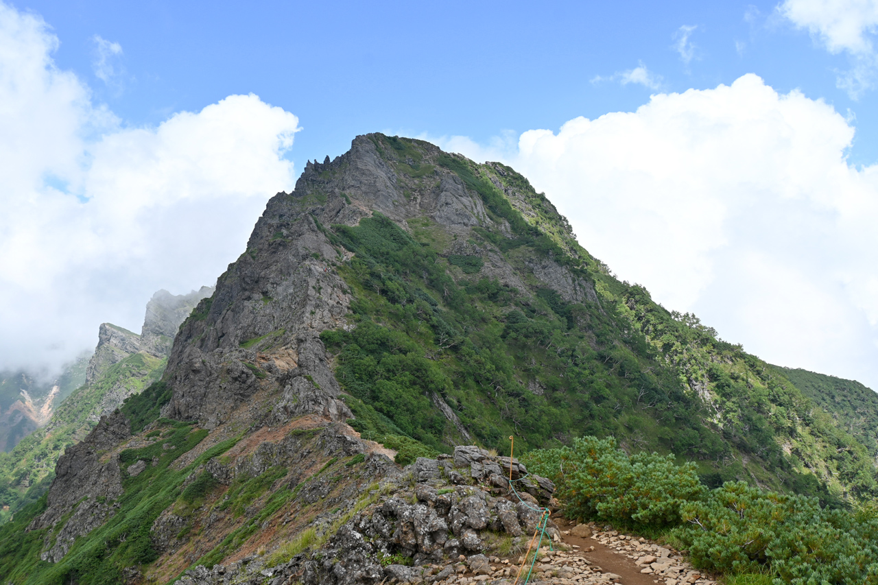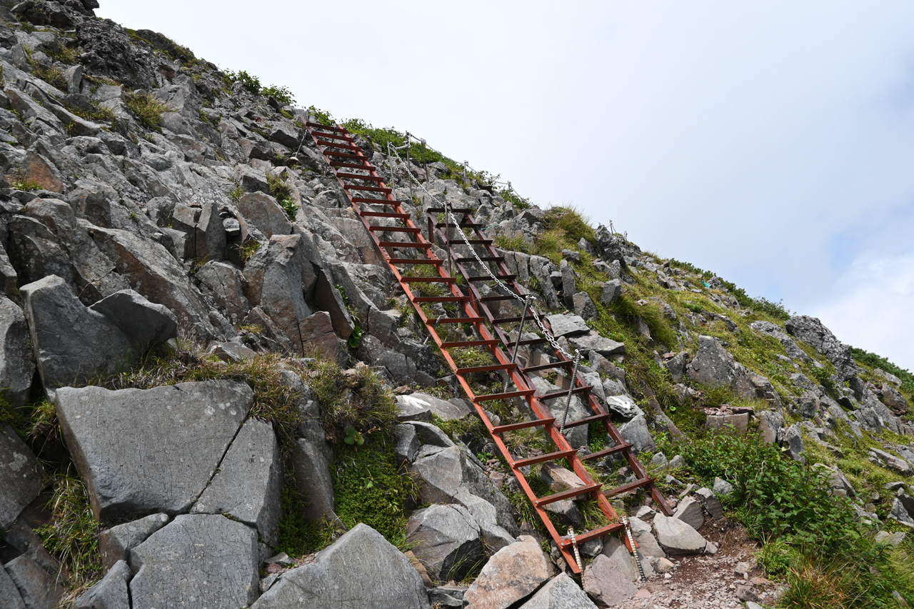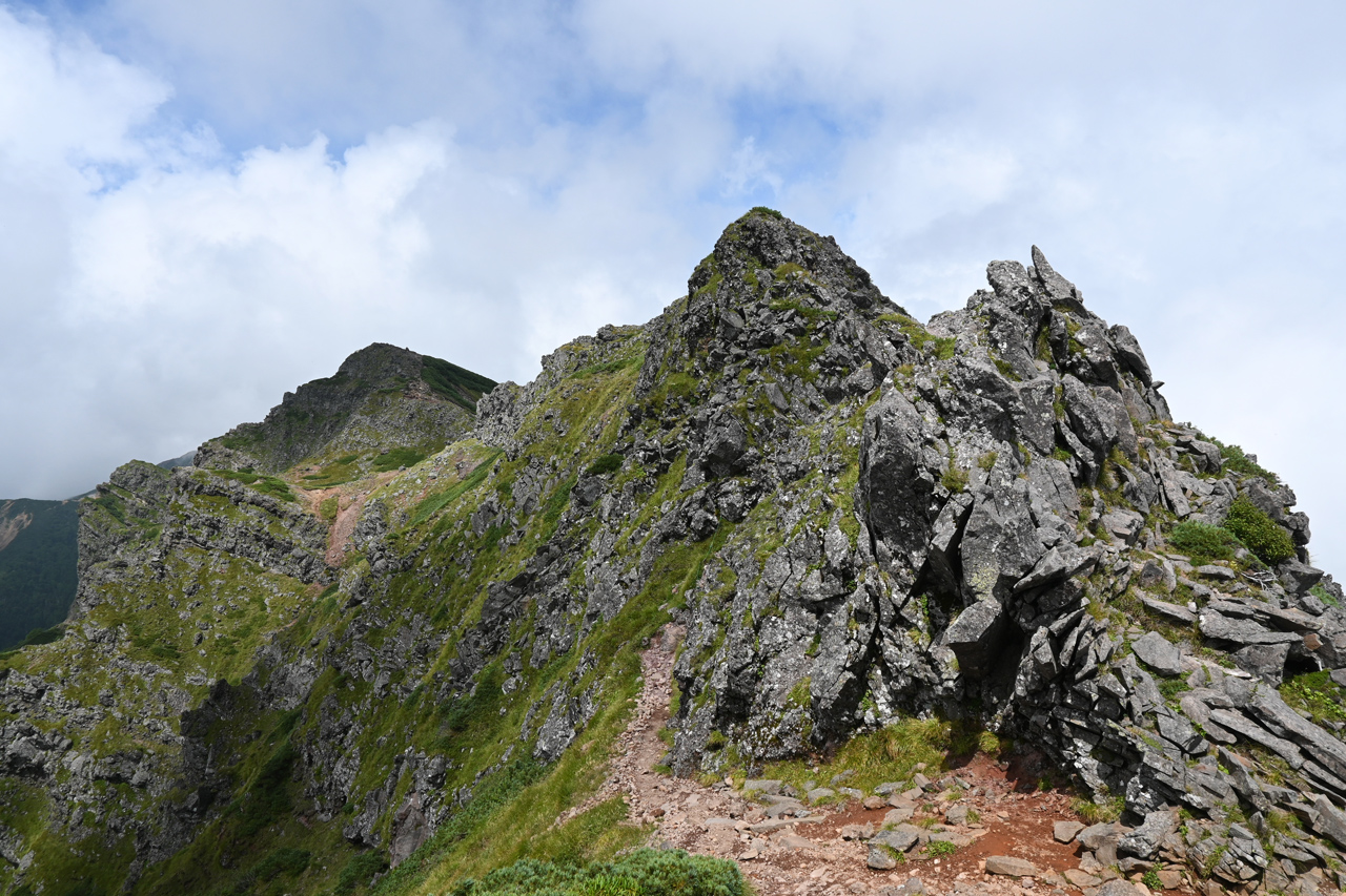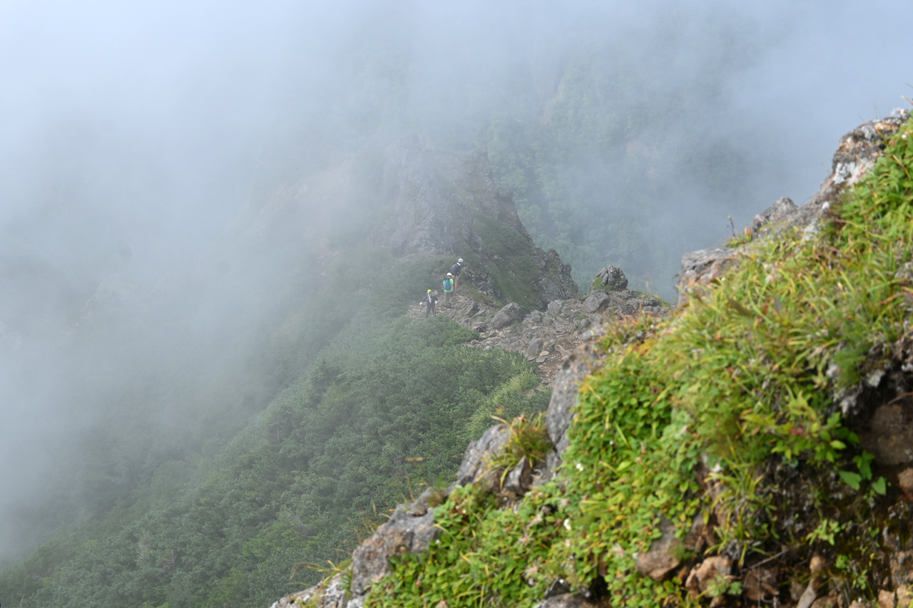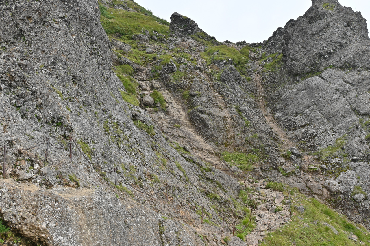 赤倉岳が近づくと噴火口跡の稜線を辿ります。