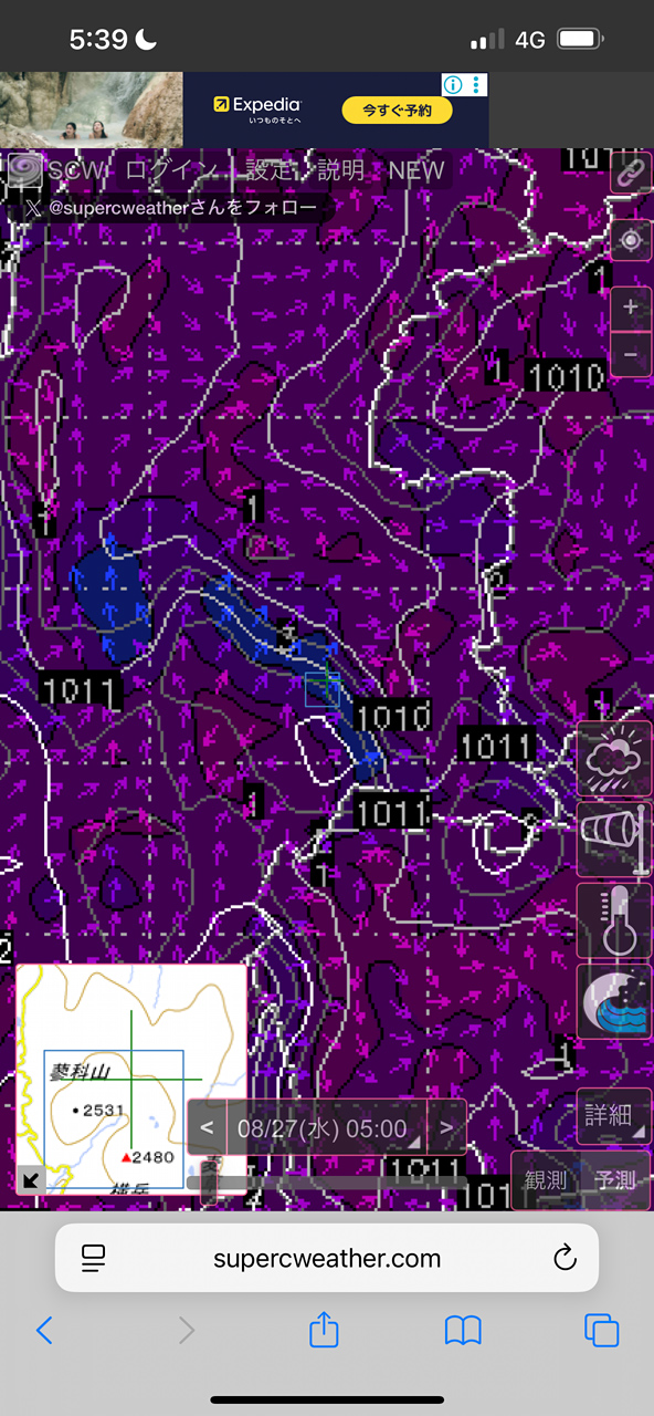 ロープウェイ山頂駅はガスと強風 観光客は外に出ても秒で建物に戻っていく😶
