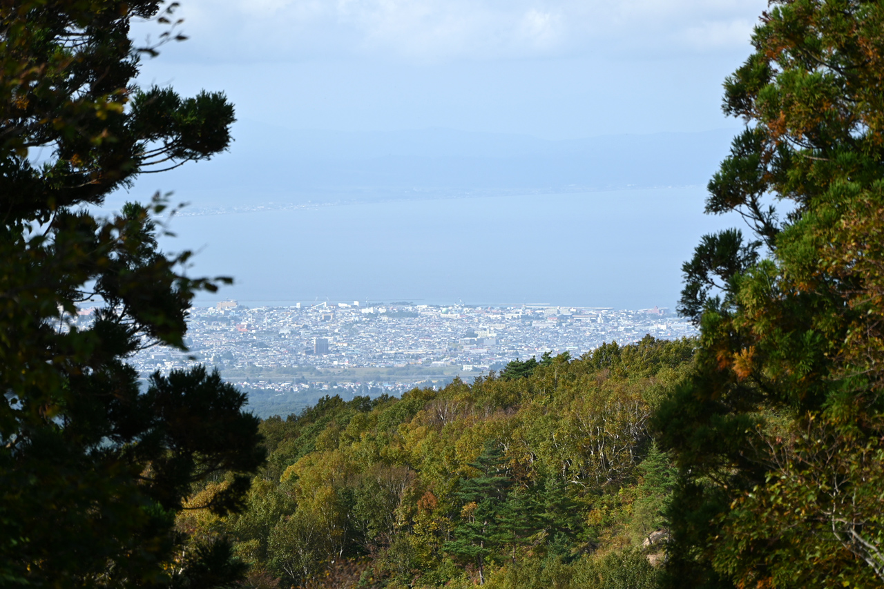 かろうじて青森市街と陸奥湾が見えたがこのあとガスで見えなくなった