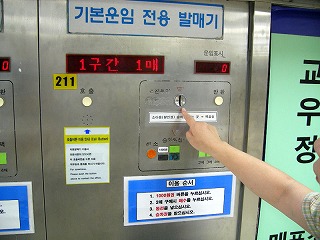 今日の予定は、朝一番でハンガン(漢江)クルーズ。そして国鉄に揺られてインチョン(仁川)探索である。 地下鉄の切符売り場には必ず千ウォン専用の自販機がある。だが不思議にこれを使っている人を見かけない。現地の人達はT-Moneyという電子マネーで地下鉄やバスを利用しているようだ。この自販機はコインしか使えないところがネックなのだ。千ウォンなら札の方が手持ち量が多いのに札対応の機械は滅多に見かけない。 |