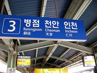 また、途中から南方面のチョンアン(天安)と今回目指す西方のインチョン(仁川)に行き先が別れるので要注意だ。