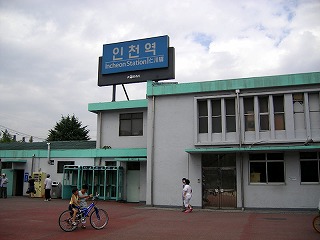 窓外の風景は、初めのうちは東京の中央線を彷彿させるような街並みである。時折大きな駅に幾つか止まるが、終点のインチョンに近づくに従い段々と街も寂しい感じになってきた。終点の一つ手前のトンインチョン(東仁川)ではあらかたの客が降りきってしまい、乗っている車両にはもはや我々と数人のみ。