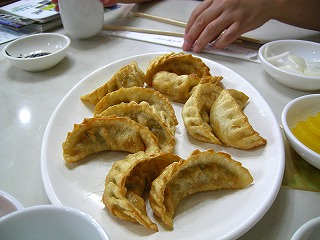 焼饅頭(焼餃子)を頼んだら揚げ餃子が出てきた。焼く=揚げる、なのかな?具がしっかり詰まっていてなかなか美味。薬味で臭みを抑えているので肉嫌いの自分でも抵抗無く食べられる。