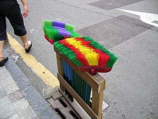 日本のスーパーカブによく似たバイクが駐まっていた。ガッチリした荷台とシート前の巨大なふくらみ。あれはガソリンタンクなのだろうか。カブなら燃費が良い筈なのであんな大きなタンクは不要だろう。きっと収納に違いない。 韓国で見かけるバイクは、このように荷物運搬用が殆どである。ソウルの街中で極たまに日本のスポーツバイクを見かけるが、99%はこのように働くバイクと言ってよい。 |
