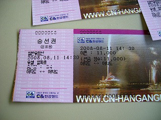 チケット売り場に着くと丁度2時出発の船が出たところだ。2時の船にはロッテワールドのあるチャムシル(蚕室)行きの便があったのだが、次は夕方になってしまう。ここの船着き場から周遊して戻ってくる船があったのでそれに乗ることにした。