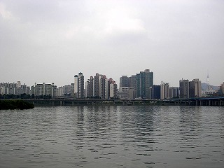 朝と同じコースでまた電車の客となる。冷房が効いている車内は極楽だ。途中うつらうつらとしているとあっという間にくシンギル(新吉)に到着した。朝のリベンジの為、ヨイナル駅から再びむせかえるような灼熱地獄の地上に出てハンガン(漢江)のほとりを歩く。