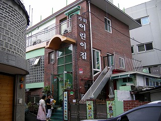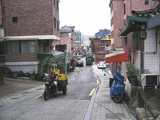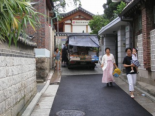 小さな子供を連れたオンマ(お母さん)とアジュマが出てきた。どうやら近くの保育園に預けるところしい。狭い道路には後ろからも子供を送って来た車が何台も詰まっており、更に行く手には行商の車が店を開いているという状況なのに皆平然としている。大きな道路ではクラクションを鳴らし合うこの国の人達は、生活に必要な常識の閾値が日本人の「決まり」的なものを超越していると感じた。