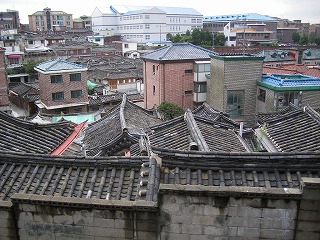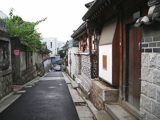 北村韓屋村は600年の歴史を持つ古い家並みが保存されている地域で、東京の下町に相当する。また、ソウルは北側にすぐ丘陵が迫っている為、このあたりも既になだらかな上り坂となっている。年代を感じさせる古い街並みを見下ろす高台には瀟洒な今風の韓屋が並ぶのもこの地域の特徴である。