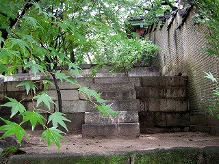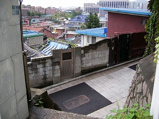 ホテルで派手な水玉模様の傘を借りて出発する。ダンキンドーナッツ(ソウル市内にはあちこちにある)でゆっくり朝食を済ませ、汗蒸幕組と別れた。地下鉄3号線のアングク(安国)駅で地上に出て地図を確認しながらプクチョンハノンマウル(北村韓屋村)へ向けて歩く。車の多い通りから一本外れると、そこここに朝の静寂に包まれた生活の息吹や匂いが感じられる。