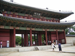 北村韓屋村を後にして東へ歩くとチャンドックン(昌徳宮)の正門前に至る。途中にヒュンデ(現代)の大きなビルがあり、ビジネスマンの姿も良く見られる。