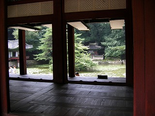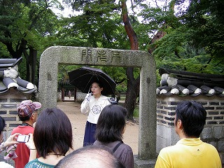 チャンドックンは韓国語、日本語、英語で専属ガイドが案内をしてくれるので、飛び込みで見学をする自分のような者には大変ありがたい。残念なのは、時間を決めてスタートするので一回のツアーで結構大量の人数で移動しなければならないこと。ちなみに今回の同行者は軽く100人は越えていると思われる。殆どの日本人は観光ツアーのガイドに伴われてやってきているようで、入り口の所でガイドと別れる。ガイドは同業者同士でしばし休憩となる訳だ。